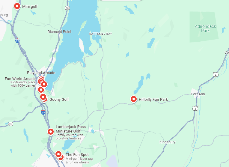 This cute little mini golfing attraction deserves a post of its own. We were planning to go to the Pirate’s Cove Adventure Golf near our campground in Fort Ann, NY to see if it compared to the Pirate’s Cove in Old Orchard that we stopped at this summer (read about it here). Then we found another course that was a little closer, then another a little closer, then one right across the street from the campground. Thank you Google Maps for providing us with so many choices. Given that we don’t have any mini golf locations within about a two-hour radius of where we are from, having so many options was exciting.