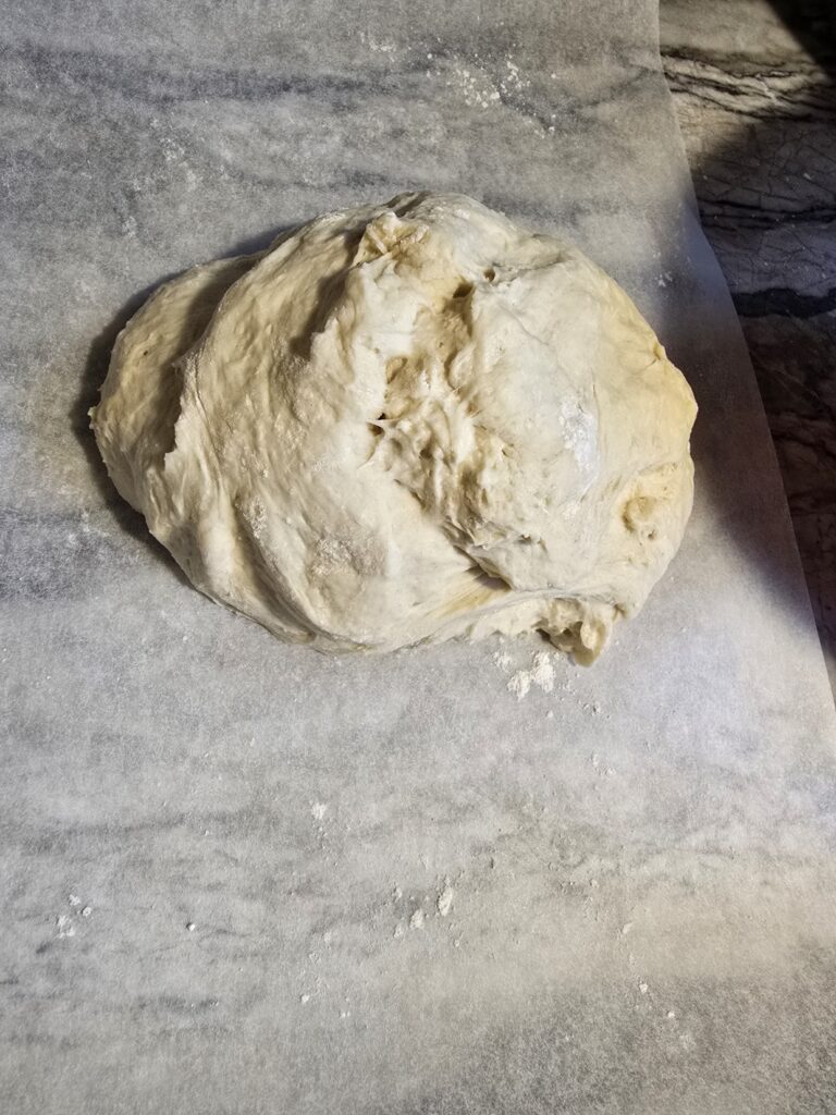 - When dough has risen, decide if you want to make one pizza with a thickish crust, or split into two for two thinner crusts.
