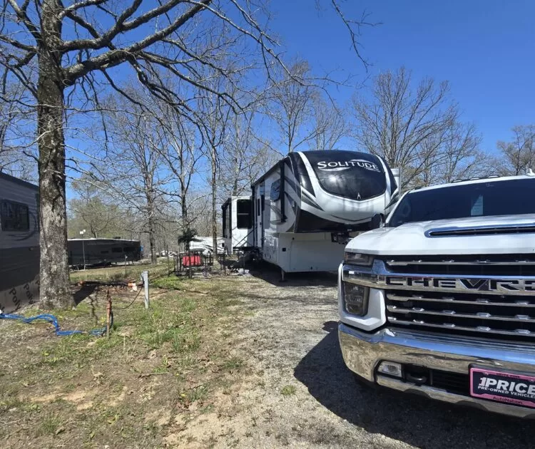 After a few weeks in Texas this spring, we zigzagged our way back up to New Hampshire in about a month. Leaving Texas, we made our way through Arkansas, Tennessee, Virginia, Pennsylvania, Connecticut, and then New Hampshire, finding as many Thousand Trails (TT) campgrounds as we could. As you probably know, with this membership, you can stay at all of their campgrounds for free. But since they are free, you kind of take what you get. They aren’t luxurious RV resorts. Many are filled with residents who have RVs in pretty rough shape. Many have outdated facilities and amenities. But some are amazing and are super popular. But they are included in your membership and you can stay for free up to 3 weeks, if available. This Natchez Trace Campground was simply a place to rest our heads for a couple of days on our journey. While not the worst TT campground we’ve stayed at, it definitely could use some work.